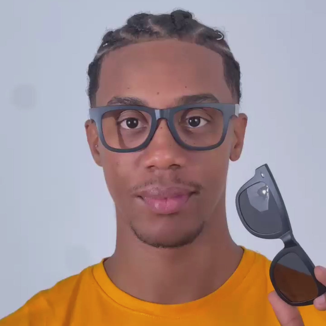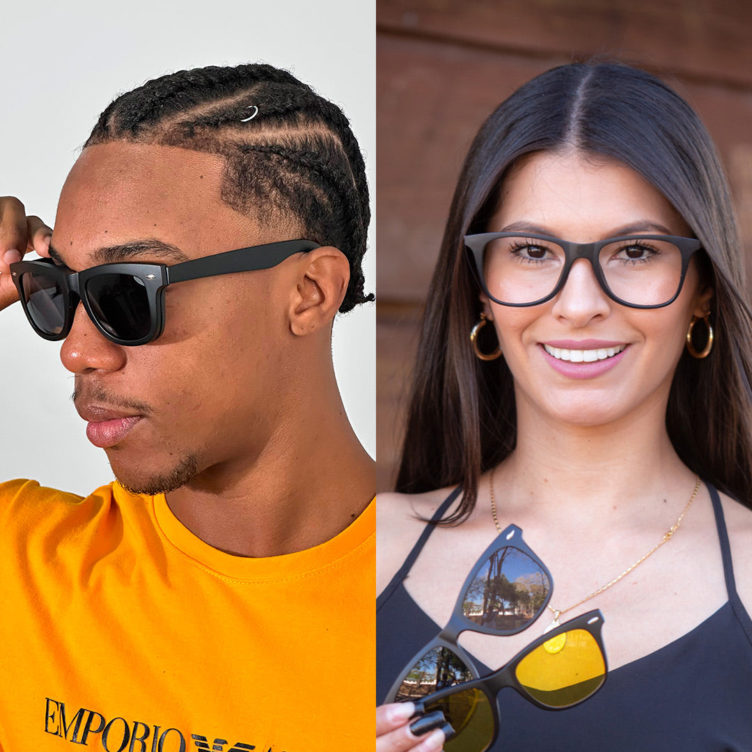 Introduzindo os Óculos de Clip-on Clarity, a solução definitiva para uma visão clara e protegida em qualquer ambiente. Este acessório 2 em 1 oferece conveniência e versatilidade incomparáveis, com sua funcionalidade de óculos de sol clip-on que se adapta perfeitamente aos seus óculos de grau. Equipado com lentes polarizadas e proteção UV 400, garantindo uma visão nítida e proteção total contra os raios nocivos do sol.