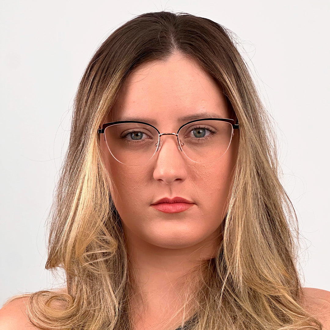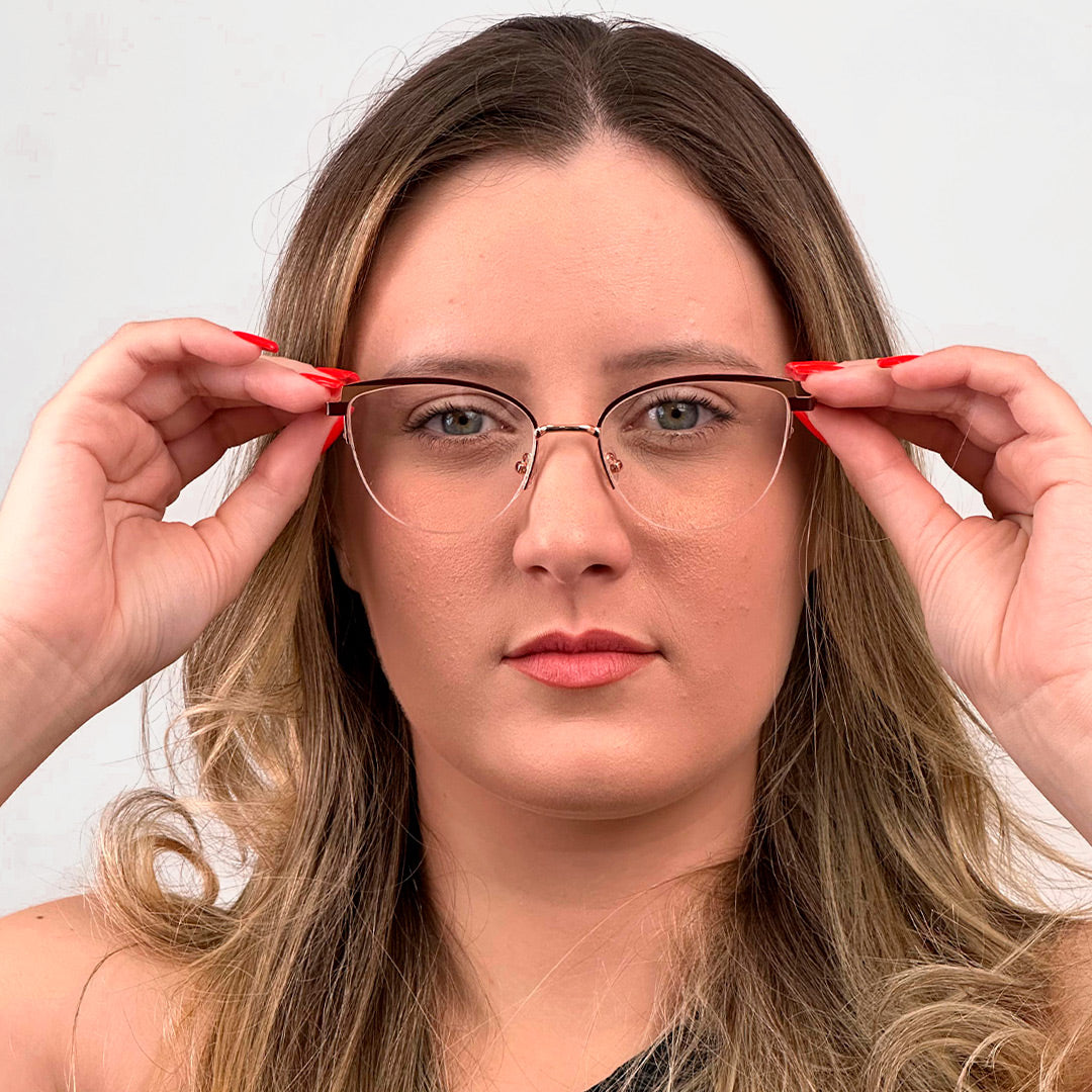 O Lorén é uma armação feminina com design oval gatinho, combinando elegância e leveza em cada detalhe. Produzida em metal delicado e acabamento refinado, conta com fio de nylon que deixa o visual ainda mais moderno e sofisticado. É a escolha ideal para quem busca um óculos leve, confortável e com um toque de charme clássico atualizado.