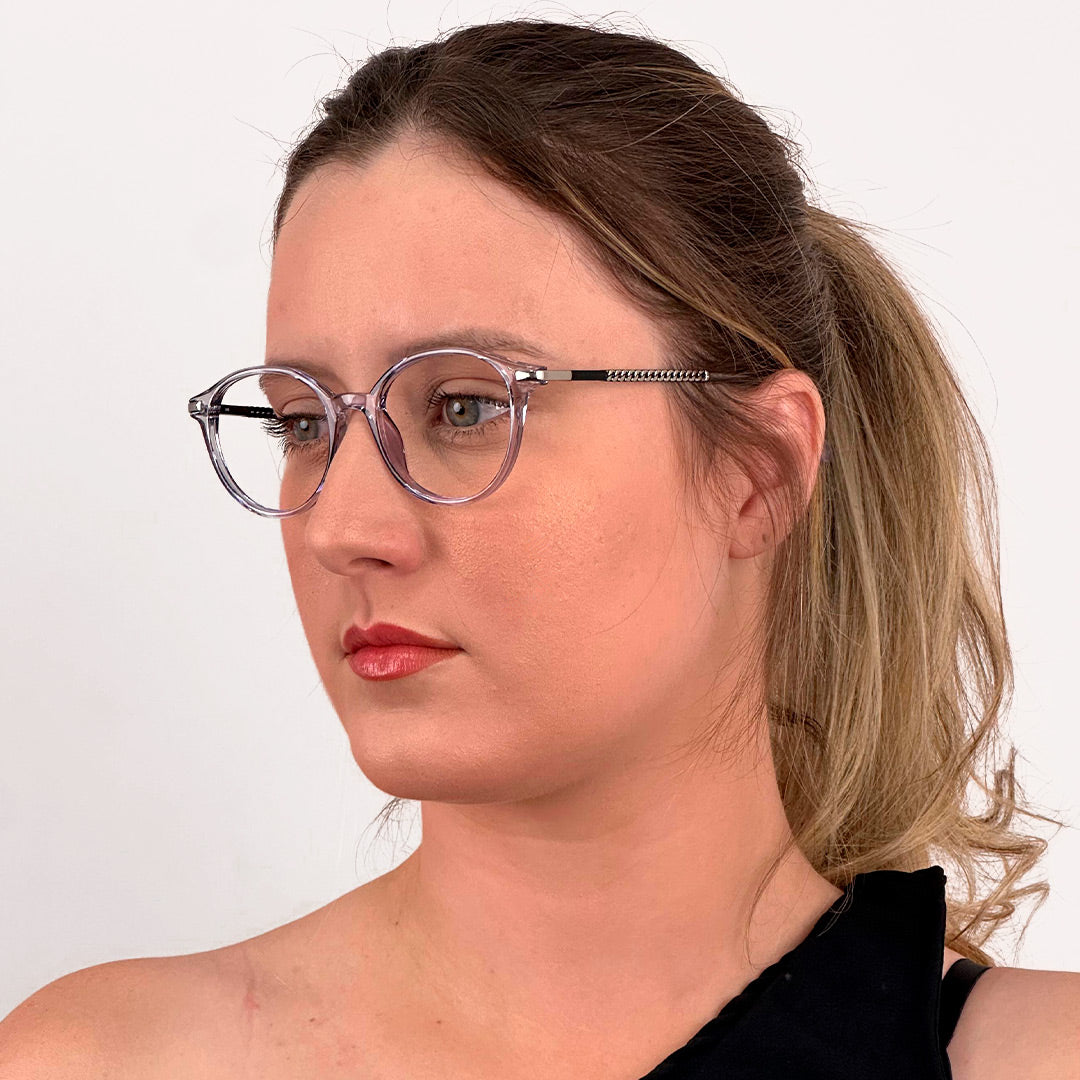 O óculos Lumena é uma armação de óculos redondo com hastes sextavadas, produzida em TR90 reforçado que oferece leveza, alta resistência e conforto para o uso diário.