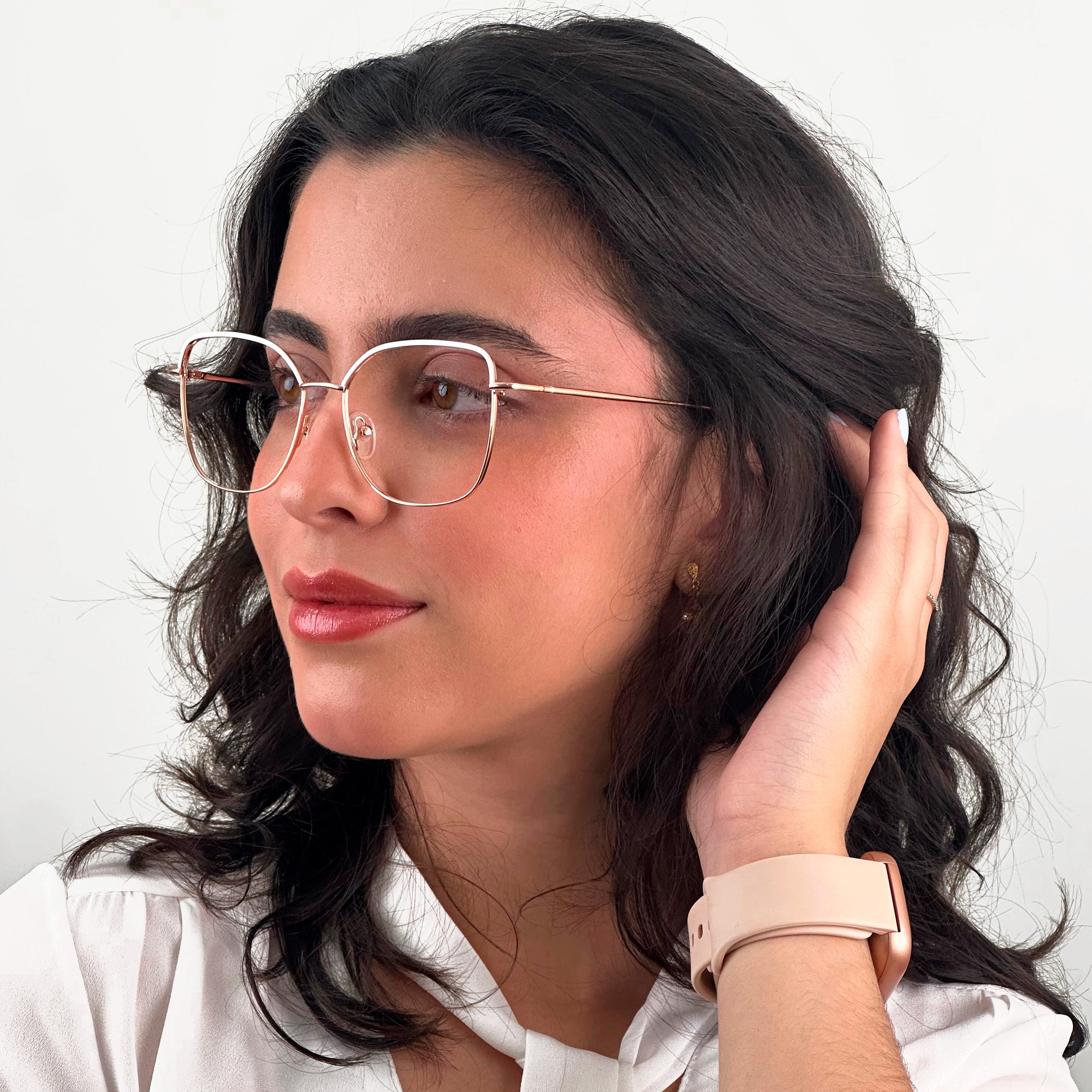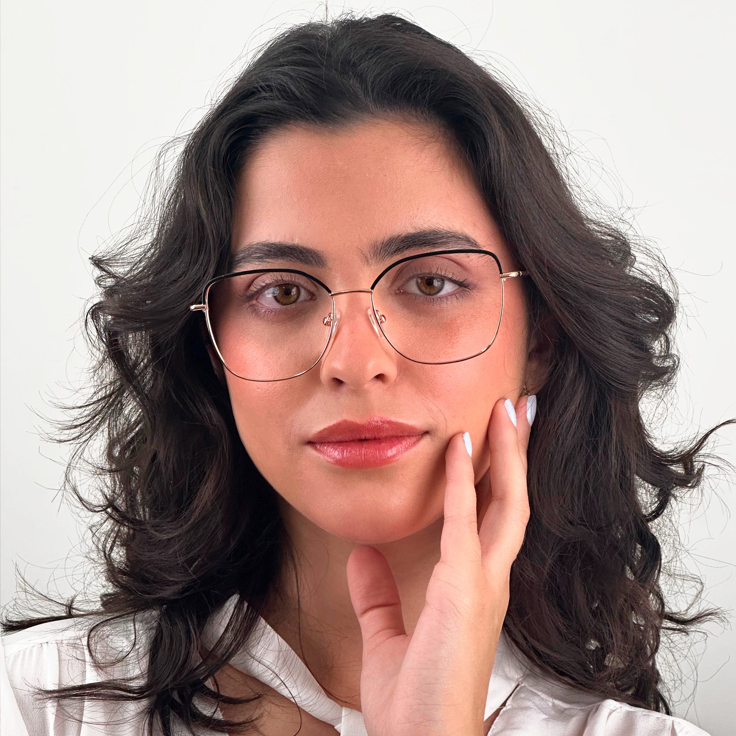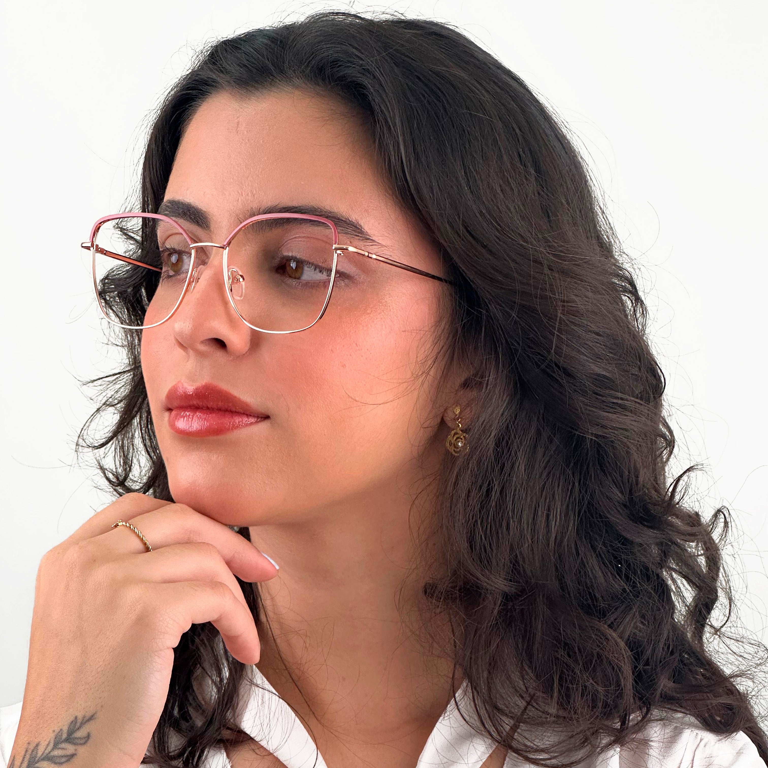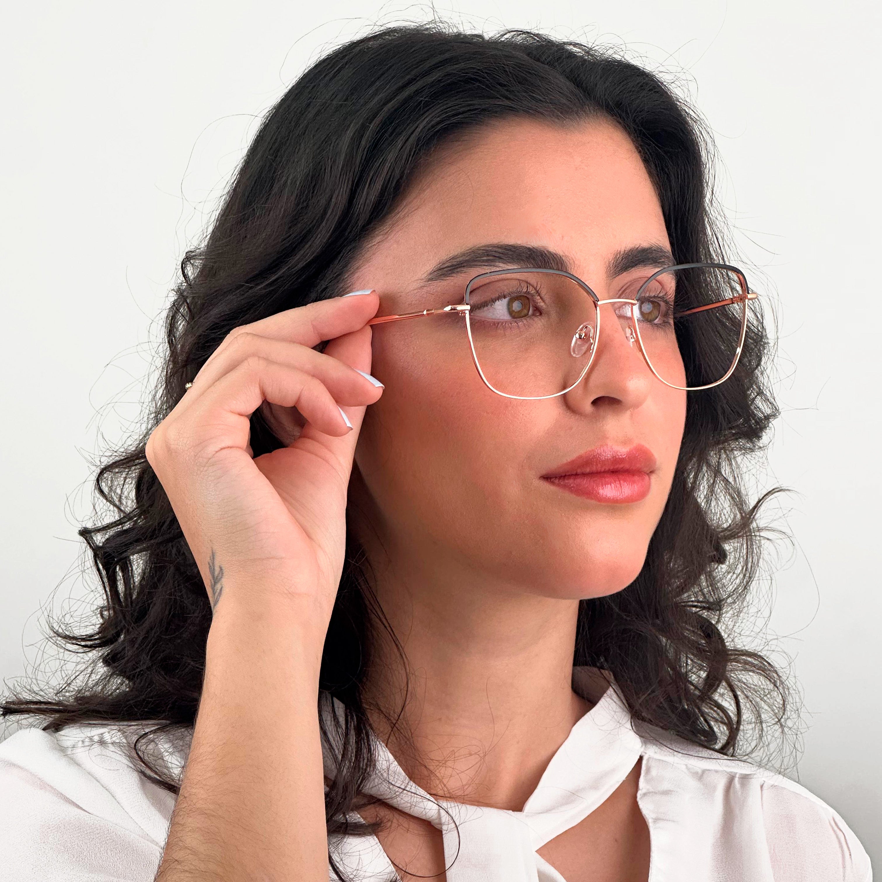 Um modelo gatinho quadrado, moderno e cheio de estilo. Sua parte frontal em metal transmite sofisticação, enquanto as hastes em metal com ponteiras em acetato garantem conforto e leveza no uso prolongado.