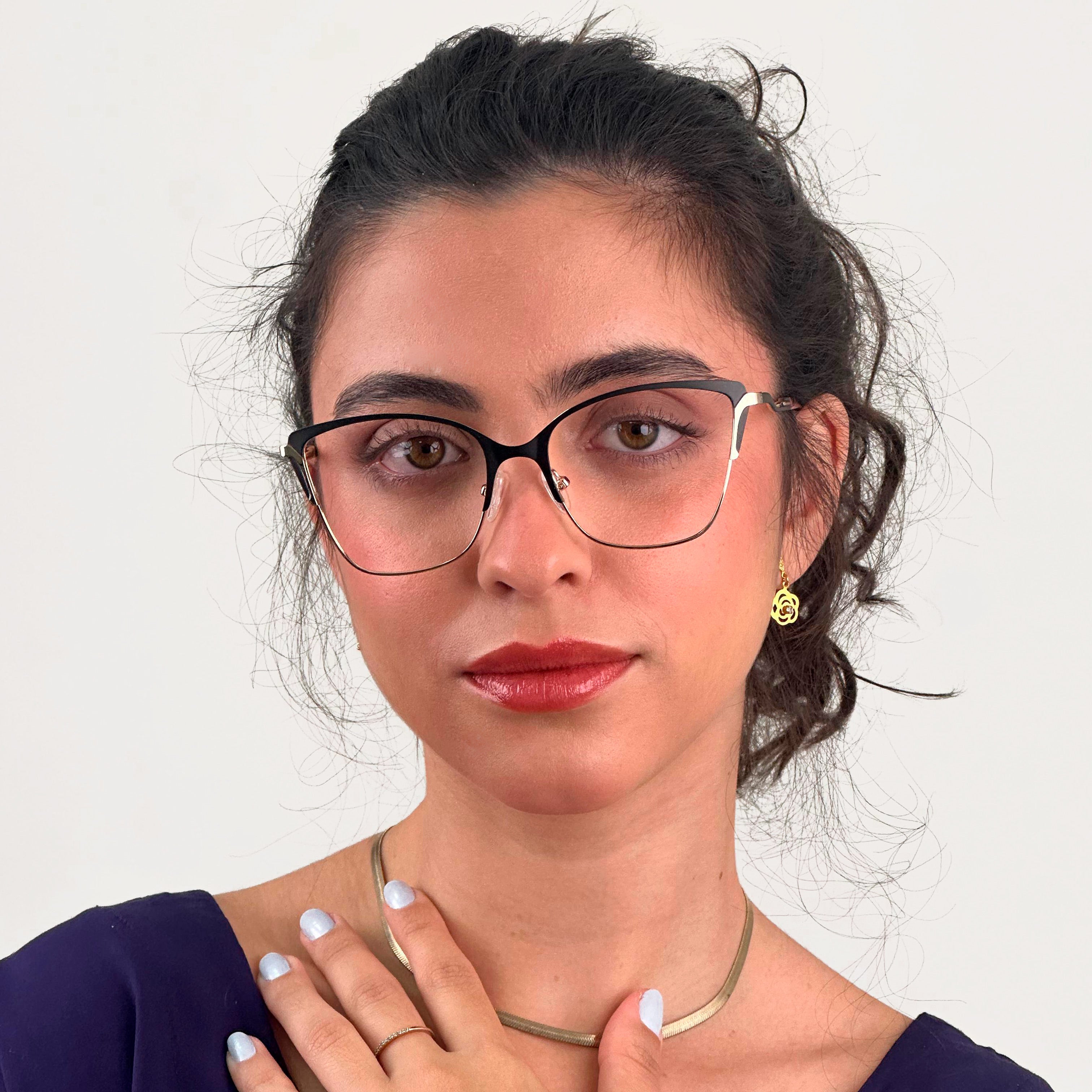 O Caitlyn é a tradução perfeita de elegância com um toque moderno. Seu formato gatinho de tamanho médio realça o olhar e adiciona personalidade a qualquer visual. Produzido em metal leve e resistente, garante durabilidade sem perder o conforto.