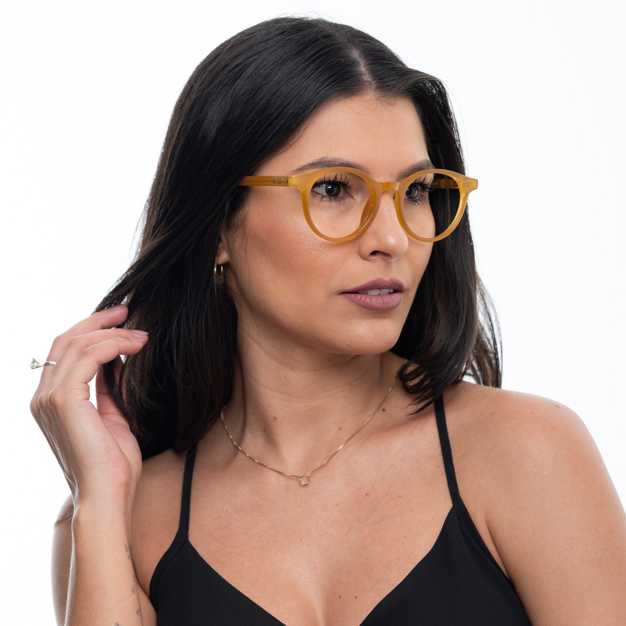 O modelo Thorkel é uma armação em acetato reforçado, com acabamento na elegante cor caramelo. Seu formato redondo traz um toque clássico e versátil, ideal para quem busca um visual moderno, confortável e unissex.